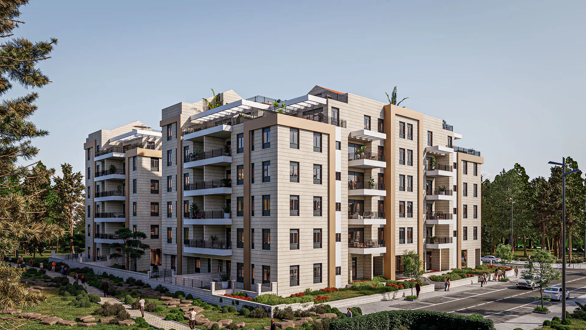 The Shbiro in Neve Zemer, Ra’anana project is an intimate boutique development comprising just three 5-storey buildings, set in beautifully landscaped surroundings in Ra’anana’s new, young, and highly sought-after Neve Zemer neighborhood, featuring cutting-edge urban planning.