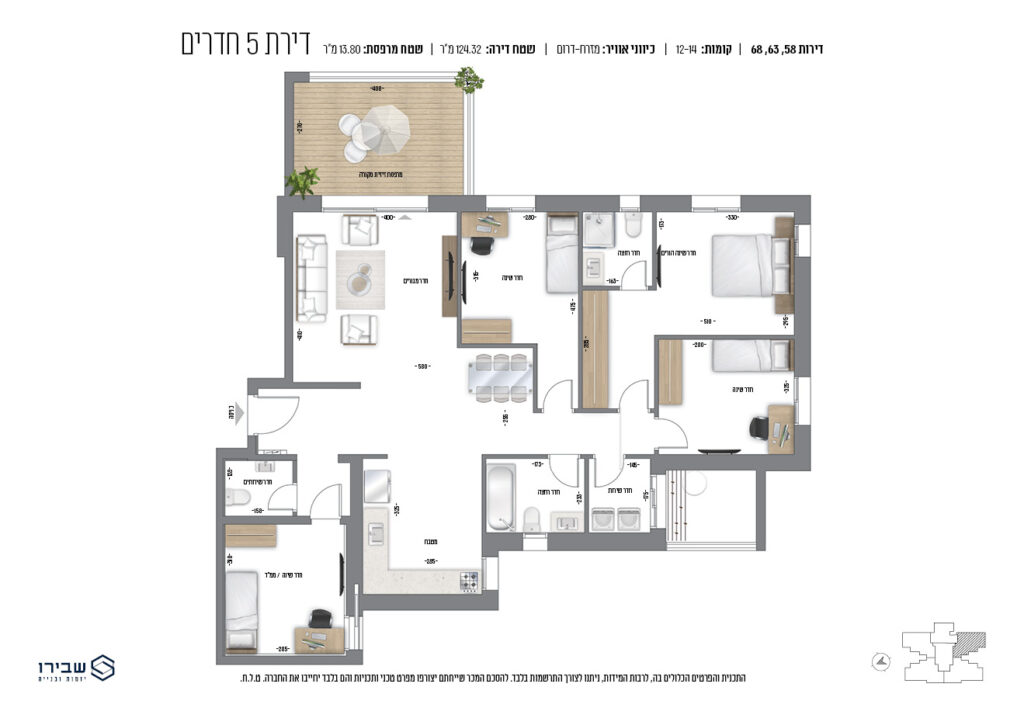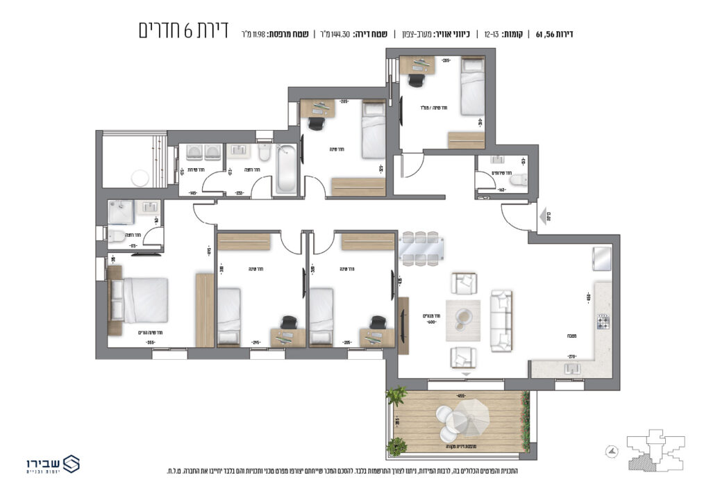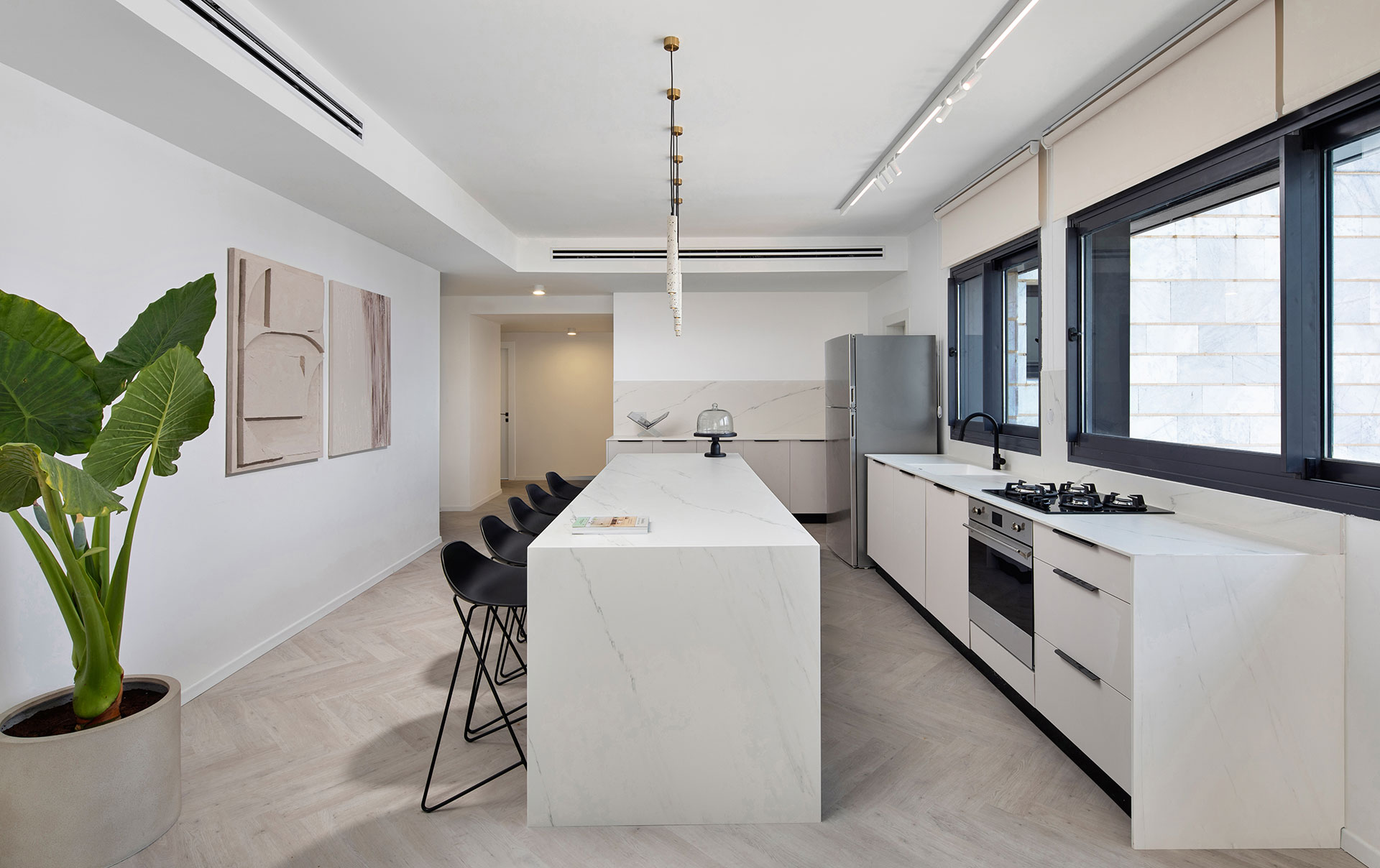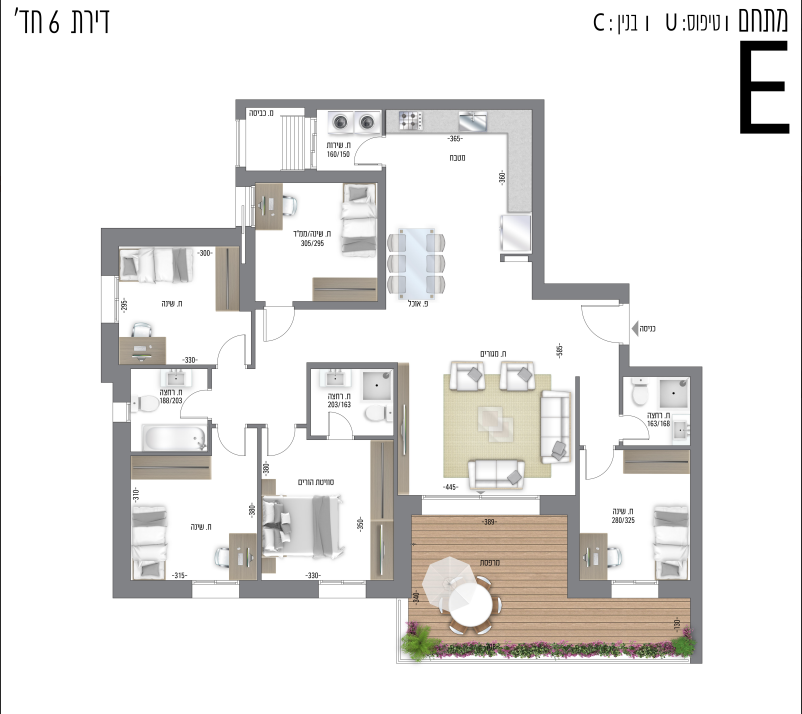 • מטבח איכותי עם ארונות סנדוויץ' עליונים ותחתונים, עם בילטאין תחתון
