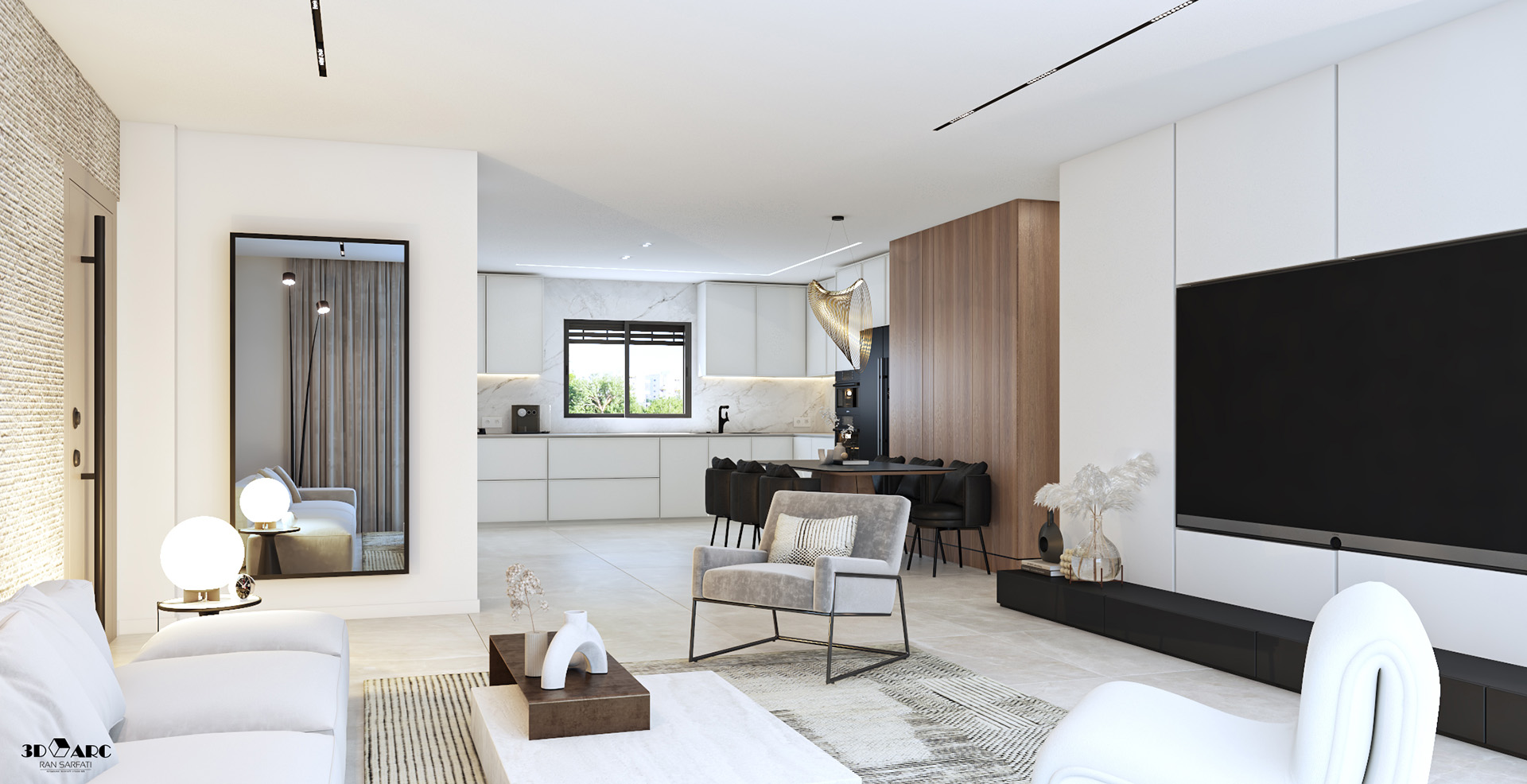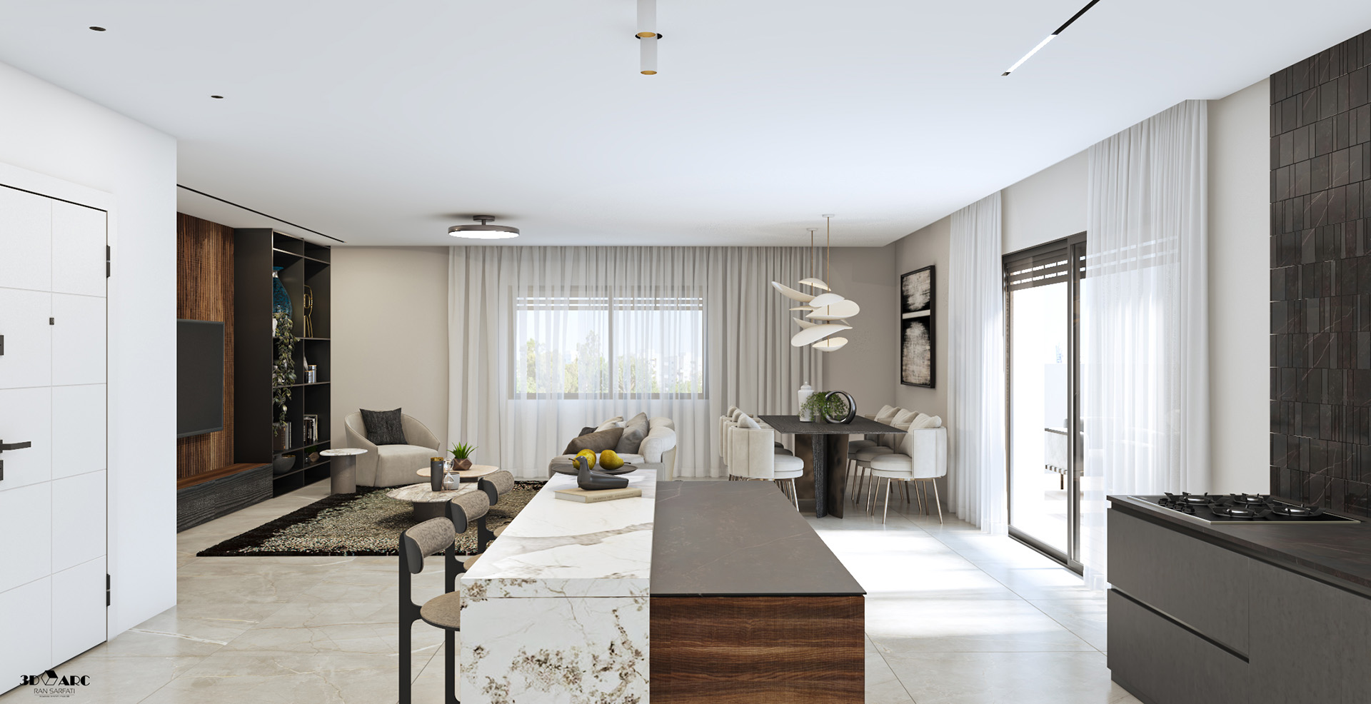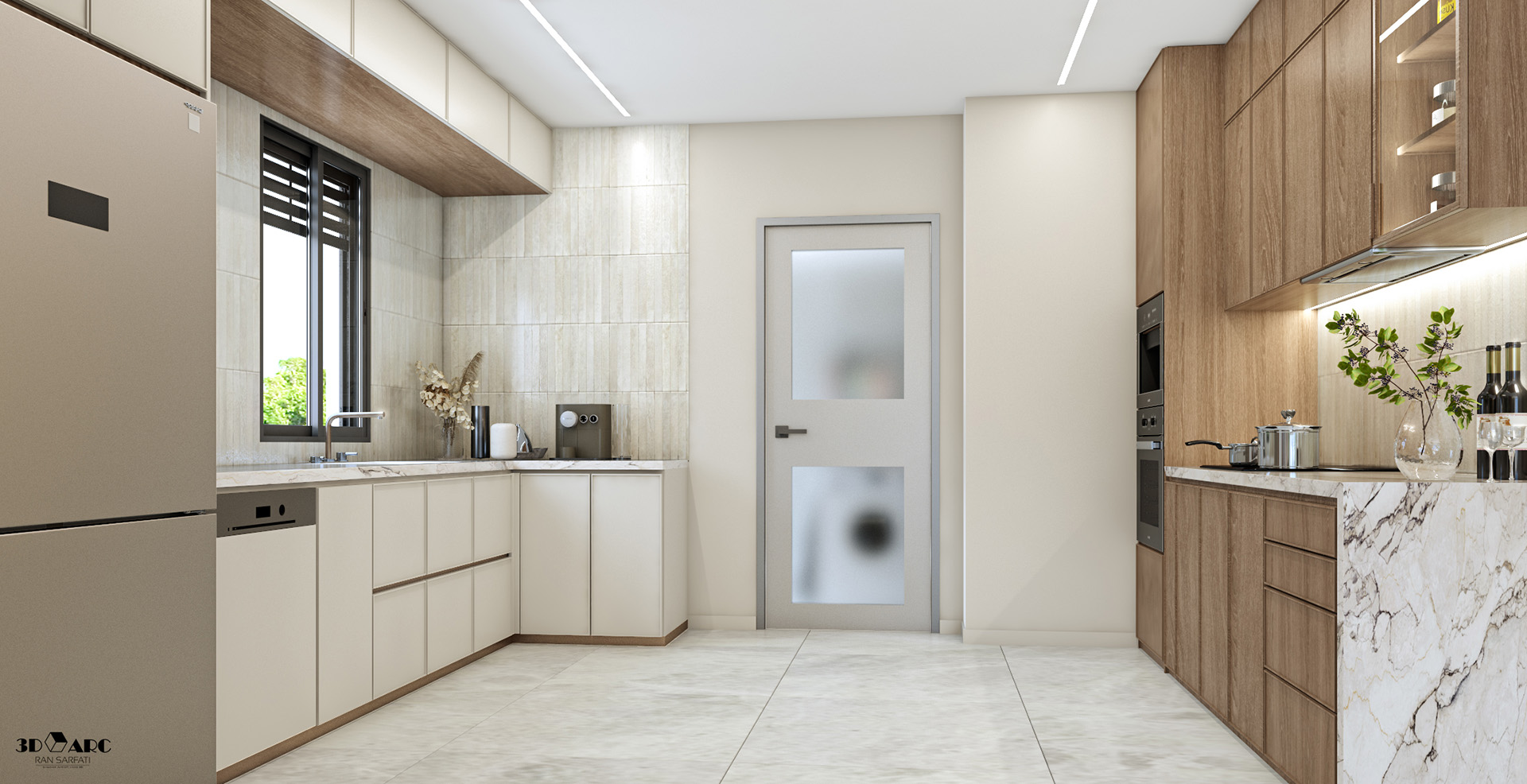 • מטבח איכותי עם ארונות סנדוויץ' עליונים ותחתונים, עם בילטאין תחתון