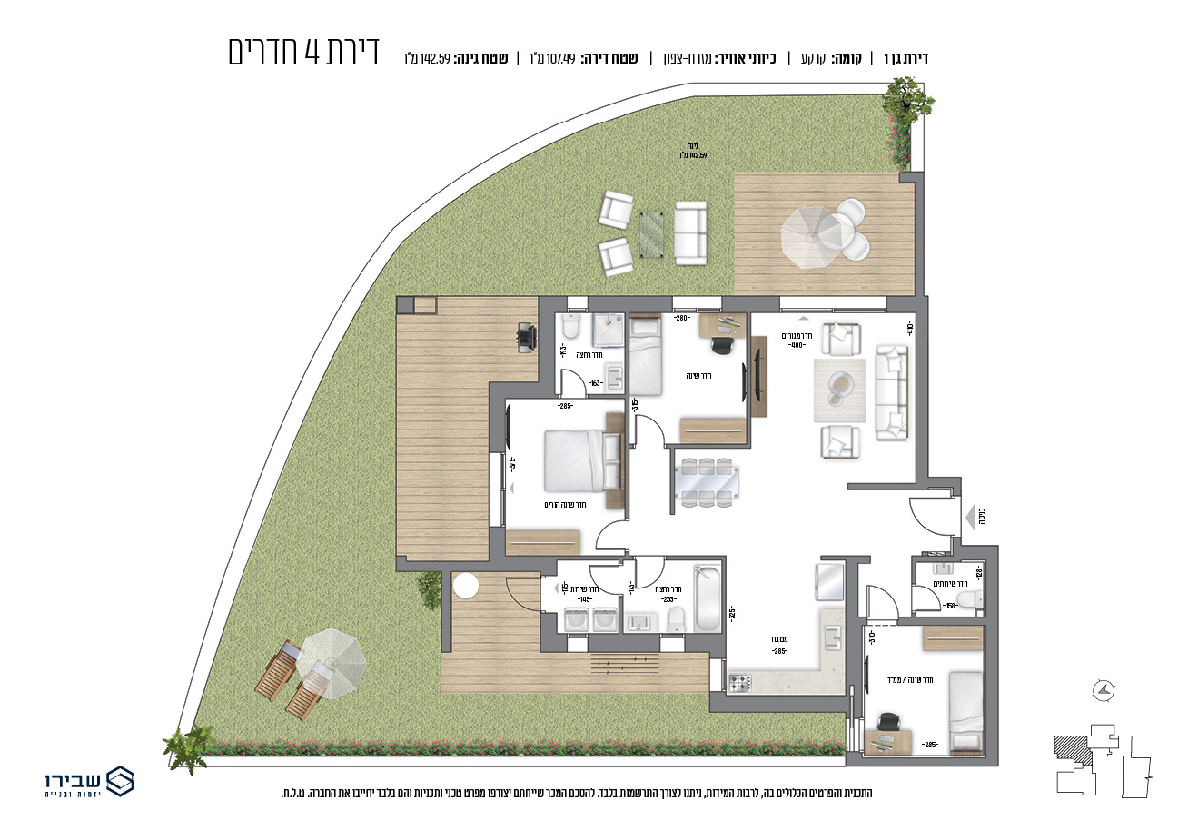 • תריסי גלילה חשמליים בכל הדירה למעט חדרי אמבטיה, מרפסת שירות וממ"ד