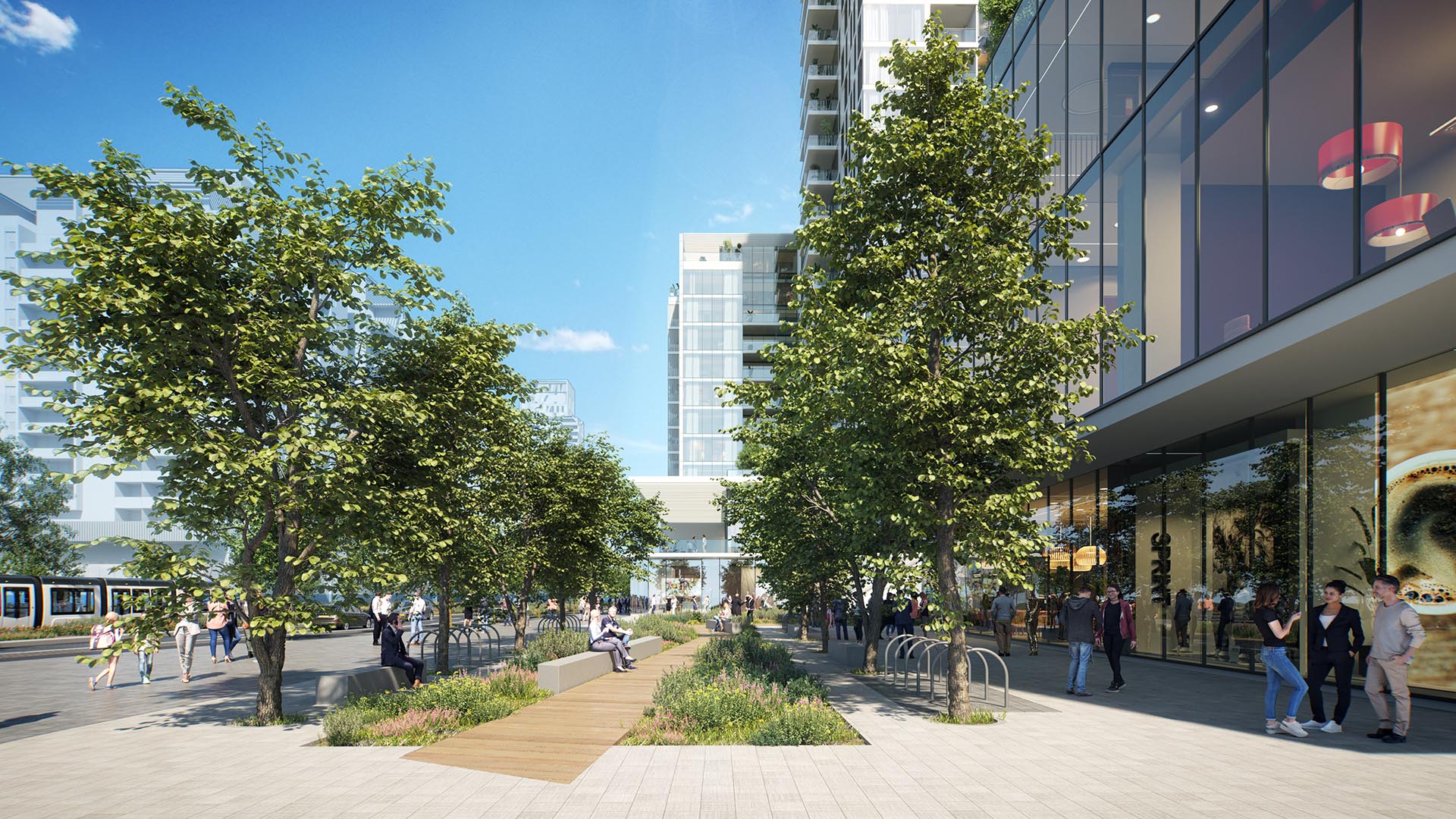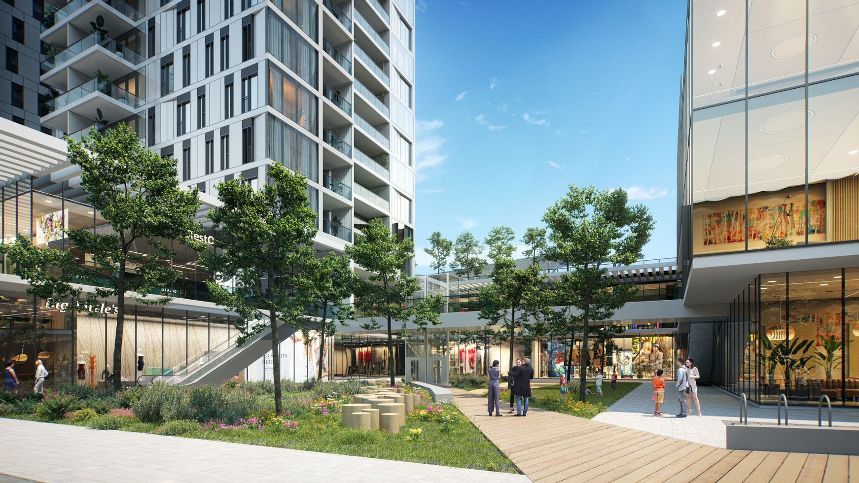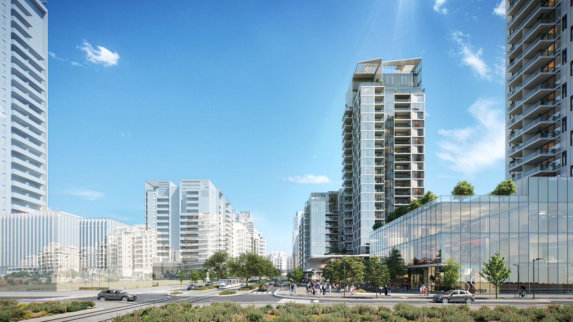 בנוסף ייבנו חניונים המיועדים לדיירי המגדלים בחניון נפרד וייעודי ללקוחות שטחי המסחר.תמהיל החנויות יכלול עסקים המשרתים את תושבי השכונה ומבקריה: בתי קפה, מסעדות, חנויות פארם, אופנה, מעדניות ייחודיות ועסקים מיוחדים נוספים.