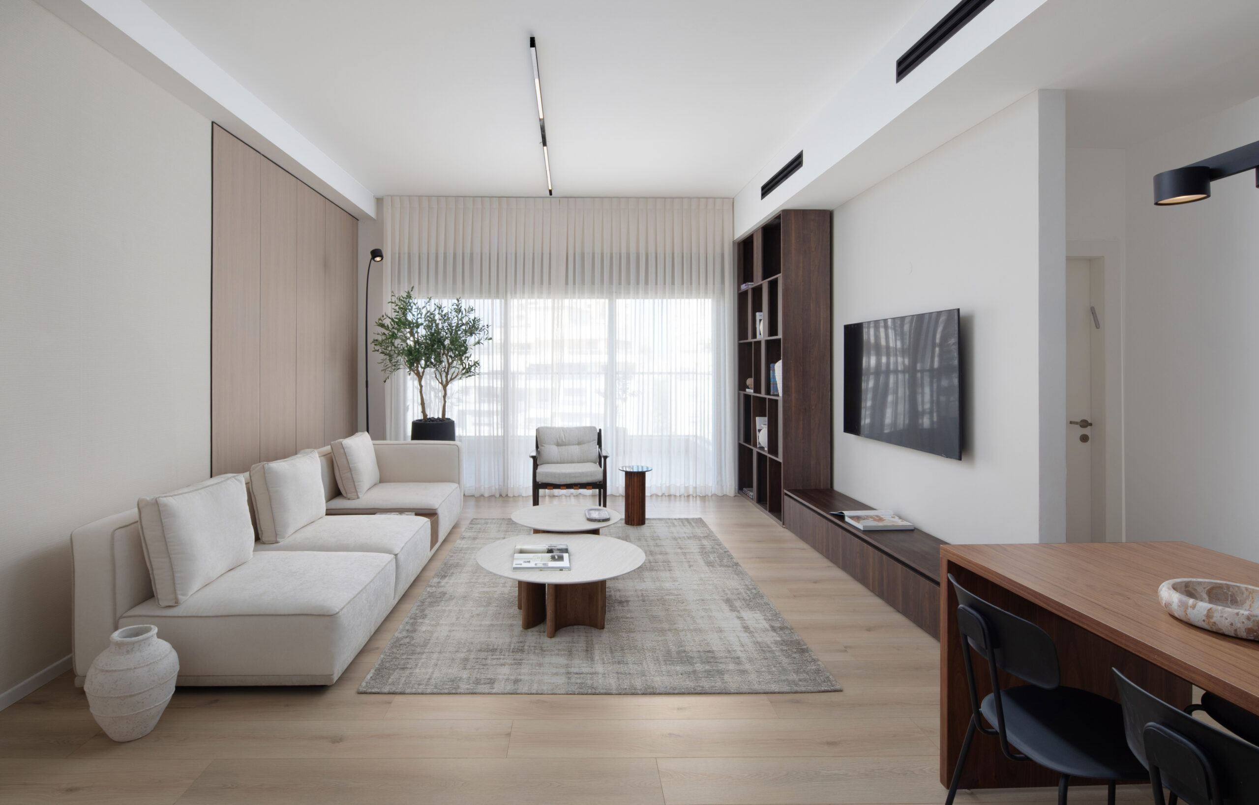 המרחב העיצובי נבנה מתוך מחשבה על איזון והרמוניה, כזה שמעניק תחושת רוגע לצד נוכחות עוצמתית. הקווים המדויקים והשפה האלגנטית יוצרים חוויית מגורים נקייה ומודרנית, שמכבדת את העבר ונשארת נכונה גם בעתיד. התאורה הרכה מלווה כל פרט ומעניקה תחושה של עומק ושלמות. זו אינה רק דירה – זו חוויה עיצובית שמתרגמת את היוקרה לשפה שקטה ומרומזת.