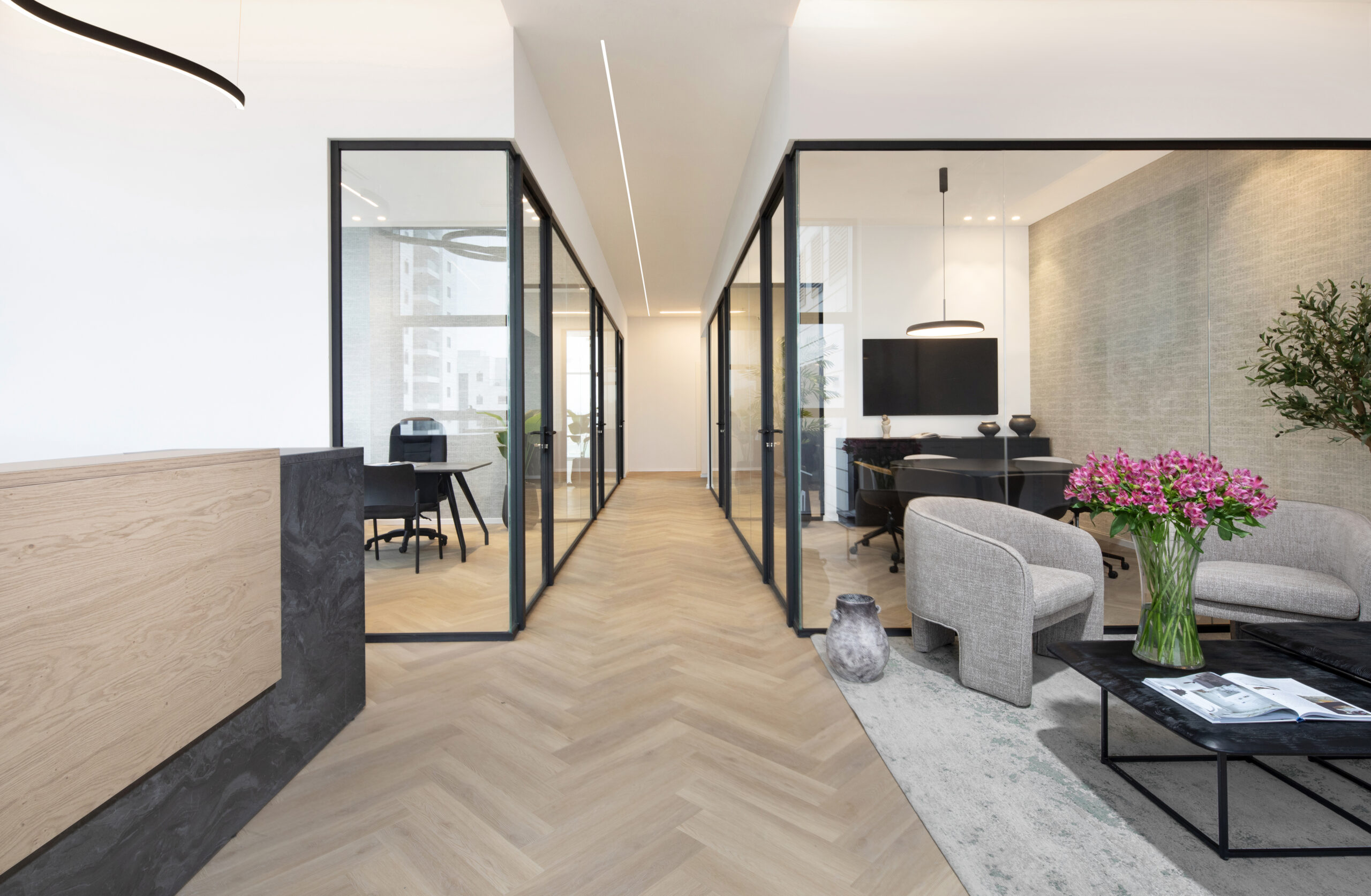 העיצוב שואב השראה מעולם של עושר עדין ואלגנטיות מודרנית, עם קווים מדויקים וחומרים יוקרתיים שנבחרו בקפידה. שילוב של גוונים רכים, טקסטורות מחמיאות ותאורה טבעית יוצר חלל עבודה מעודן, שקט ועם נוכחות. המשרדים תוכננו כך שיאזנו בין פונקציונליות לבין תחושת רוגע וסטייל, ויעניקו חוויית עבודה מוקפדת, מזמינה ומלאת השראה.