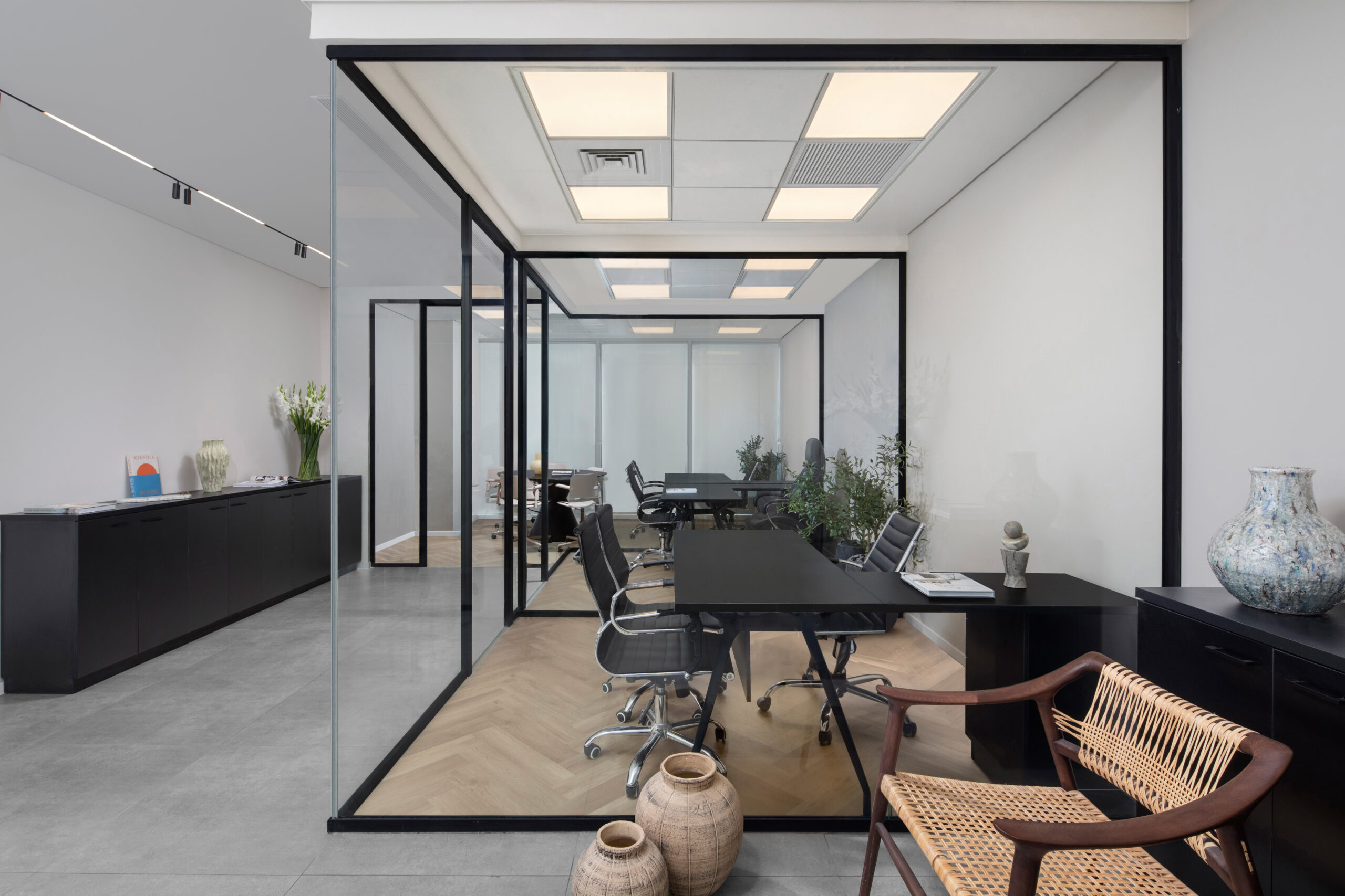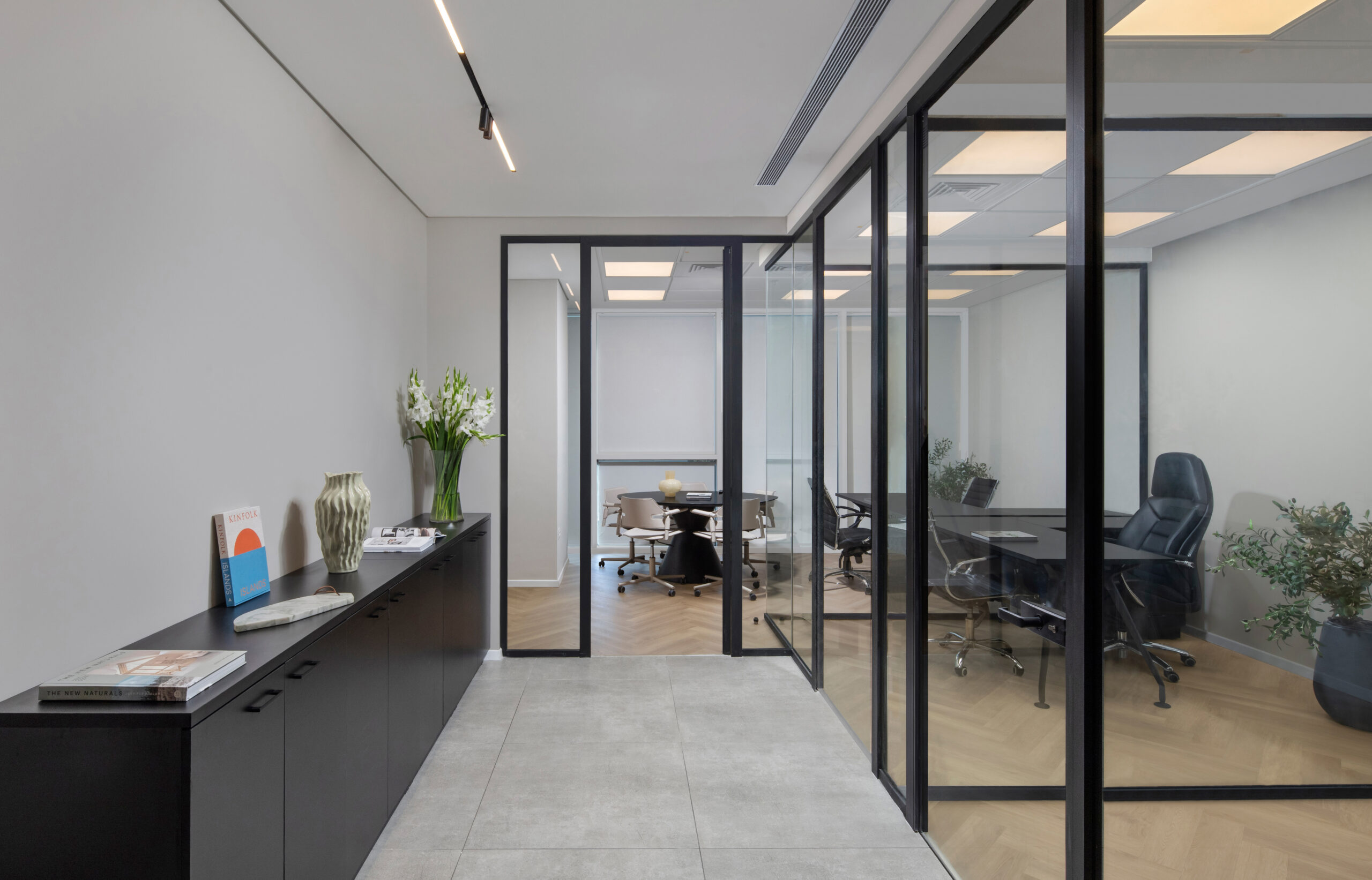 המשרדים עוצבו בשפה אדריכלית נקייה ומדויקת, המשלבת פונקציונליות מתקדמת עם אסתטיקה שקטה ואלגנטית. הקווים המאופקים, החומרים האיכותיים והגוונים המאוזנים יוצרים סביבת עבודה נעימה, ממוקדת ויעילה – כזו שמעודדת ריכוז, זרימה וחשיבה בהירה לאורך כל שעות היום. תכנון המרחב שם דגש על אור, פרופורציות נכונות ונוחות שימוש, תוך שמירה על תחושת סדר ויוקרה מאופקת. זהו מרחב עבודה שמקרין מקצועיות, יציבות וחדשנות – עיצוב שנשאר רלוונטי ומדויק לאורך זמן.