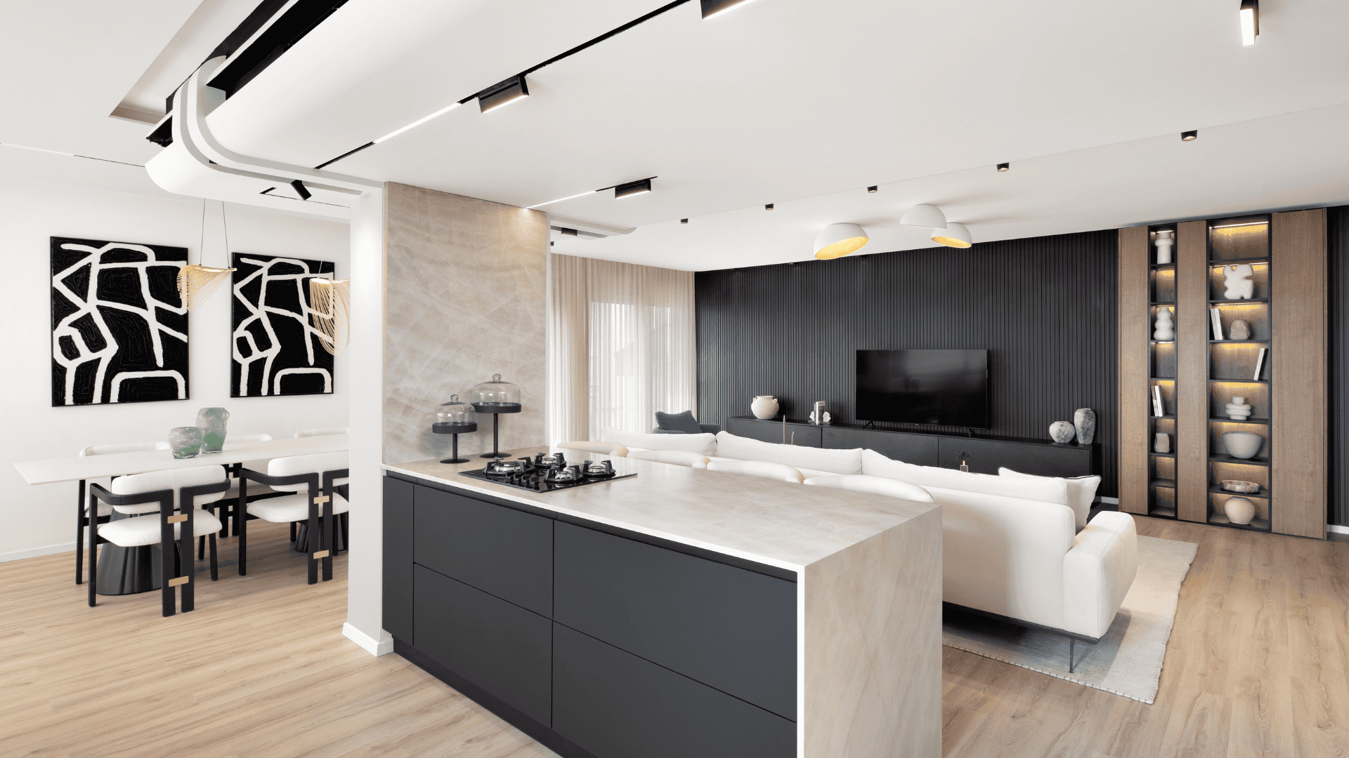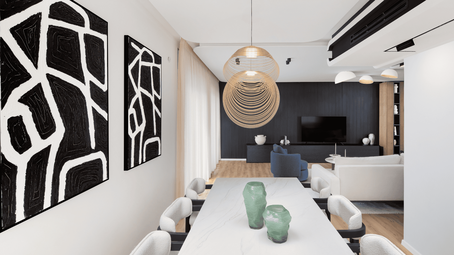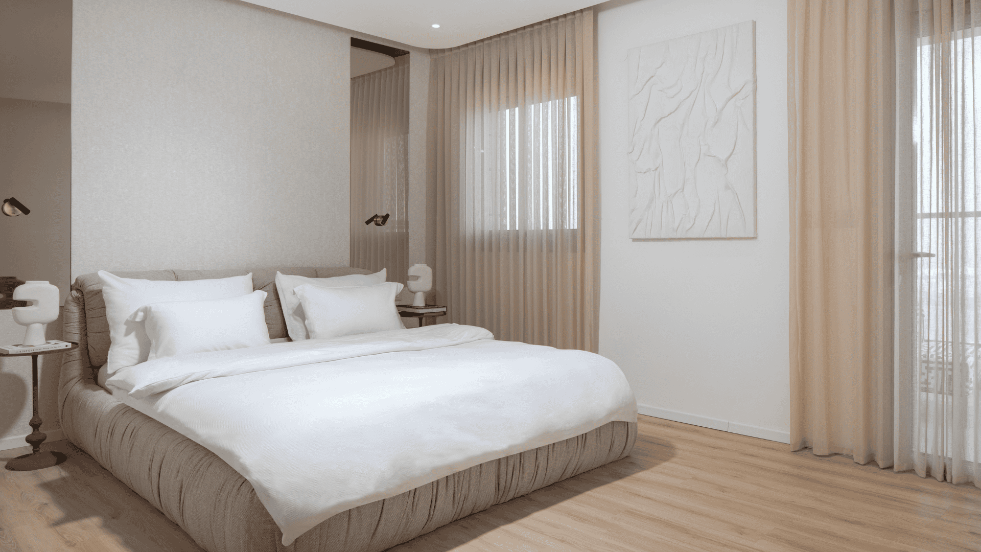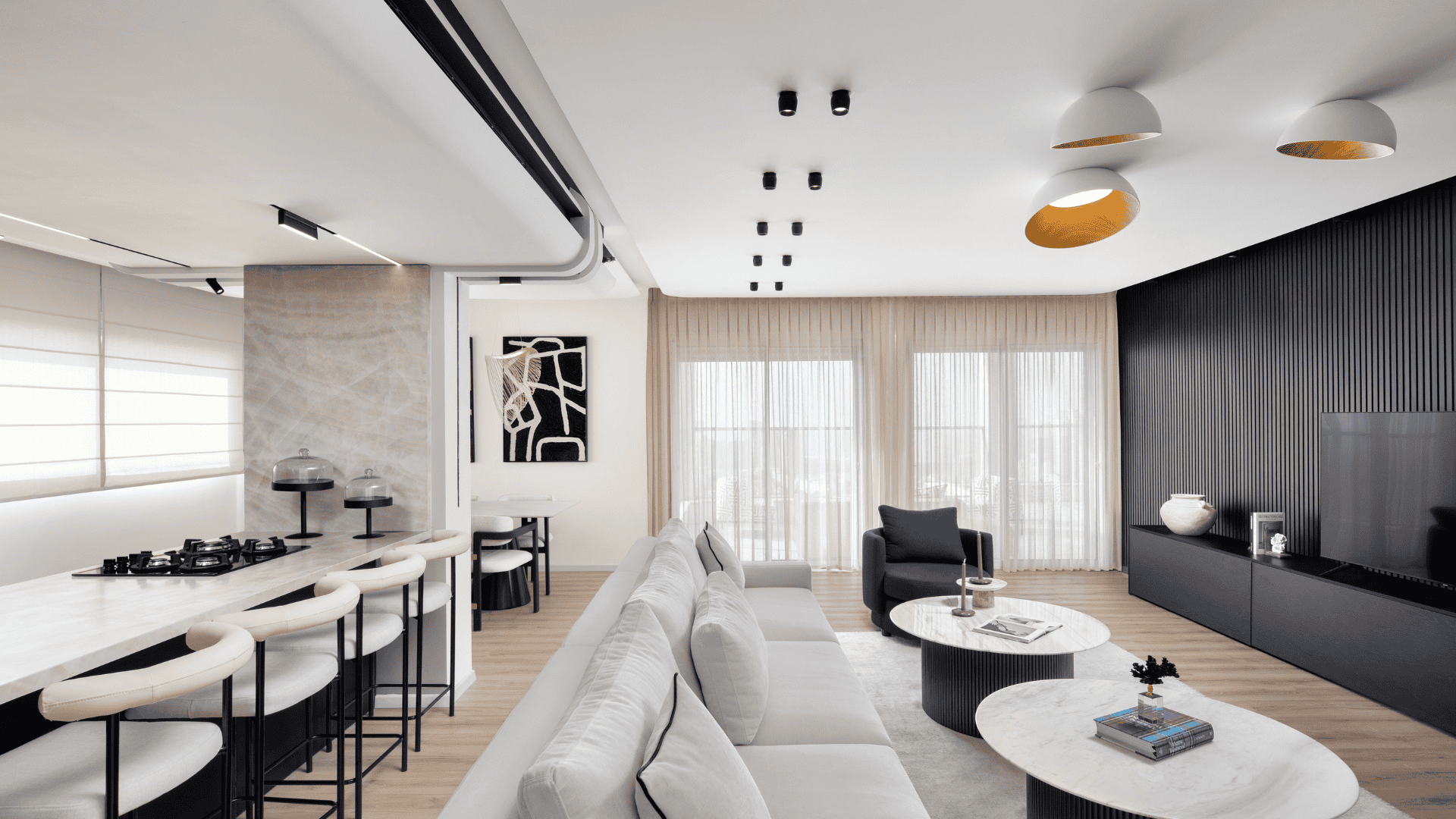 עיצוב דירה המשקיפה אל הים, בה שולבו צבעים בהירים ורכים עם חומרים טבעיים, היוצרים אווירה רגועה ומוארת. הדירה עוצבה במטרה למקסם את תחושת המרחב והנוף הפתוח, תוך יצירת איזון מושלם בין מודרניות לנוחות ביתית.