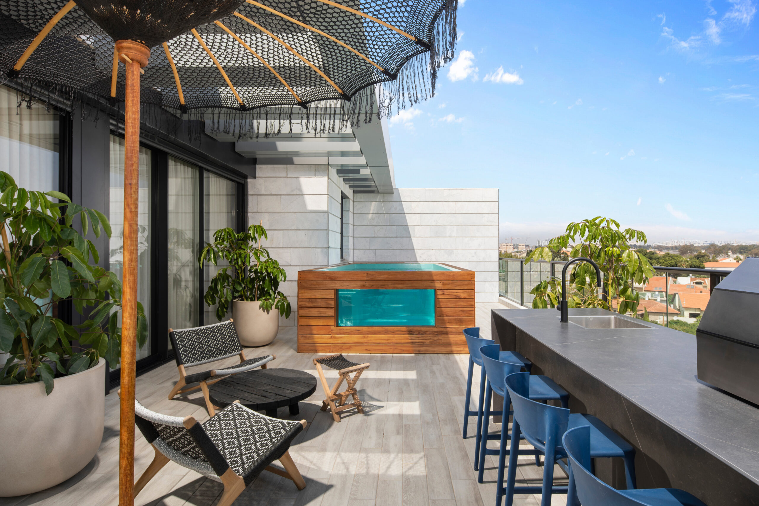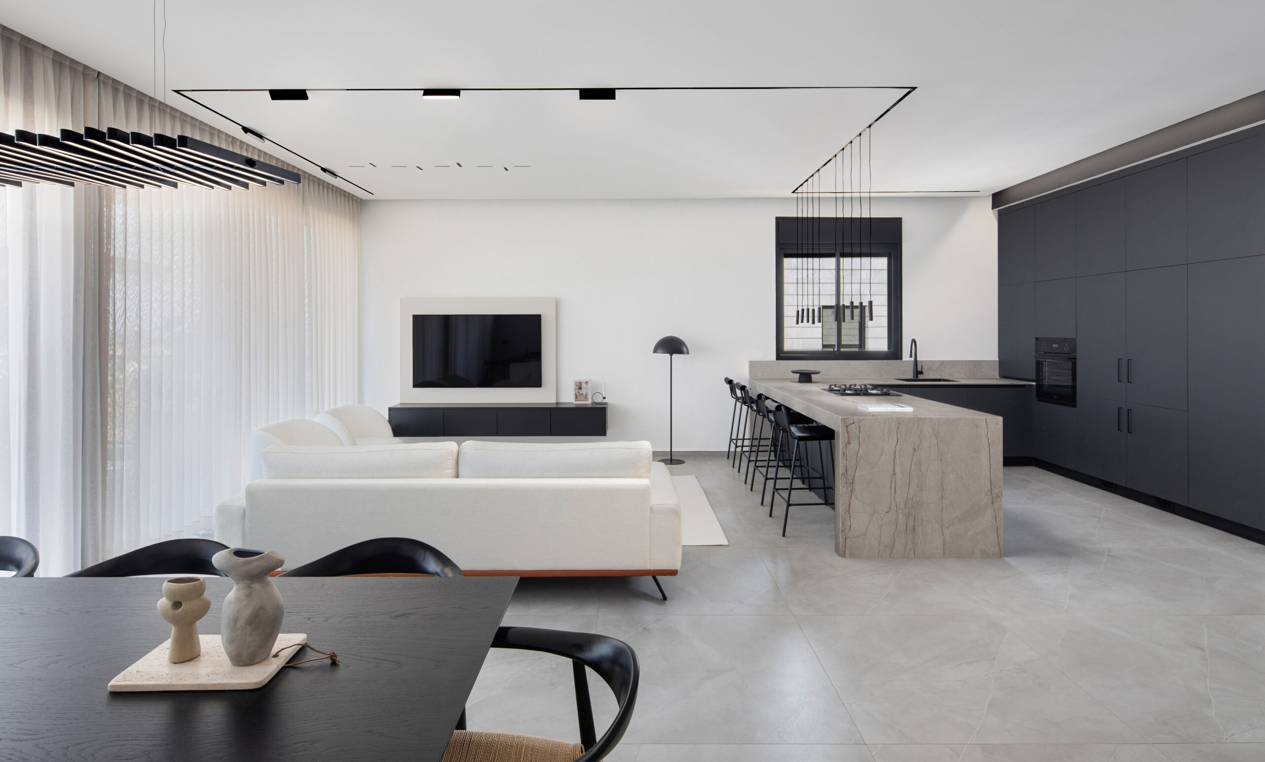פרויקט עיצוב הפנטהאוז באור יהודה מתמקד ביצירת חלל מגורים מרווח, אלגנטי ומזמין, תוך שימוש בצבעים טבעיים ליצירת אווירה רגועה והרמונית. העיצוב משלב גוונים חמים של עץ, אבן ובהירים רכים, המדגישים את תחושת המרחב והאור הטבעי החודר מכל עבר. נעשה תכנון קפדני של כל אזור בבית, עם דגש על חללים נעימים המאפשרים זרימה טבעית בין הסלון, פינת האוכל והמטבח הפתוח. החומרים הנבחרים והאלמנטים הדקורטיביים מעניקים לפנטהאוז תחושת יוקרה לצד חמימות ביתית, ליצירת חוויית מגורים מושלמת.