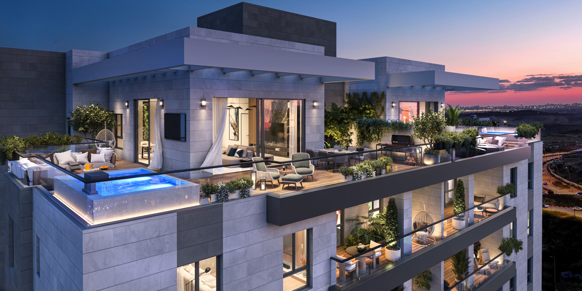 הפנטהאוז עוצב מתוך חזון של תחכום מודרני – שילוב מדויק בין חדשנות אדריכלית לאסתטיקה נקייה ומוקפדת. חללים פתוחים, קווים גיאומטריים וחומרי גמר יוקרתיים יוצרים תחושת עילוי וזרימה טבעית. חזיתות זכוכית רחבות מכניסות אור מכל כיוון, מדגישות את הנוף העירוני ומחברות בין הפנים לחוץ. כל פרט בפנטהאוז תוכנן בקפידה כדי להעניק חוויית מגורים עכשווית, מתוחכמת ומעוררת השראה.