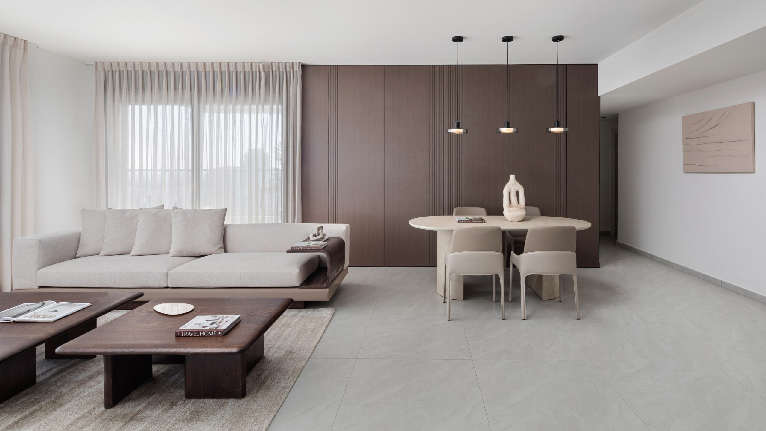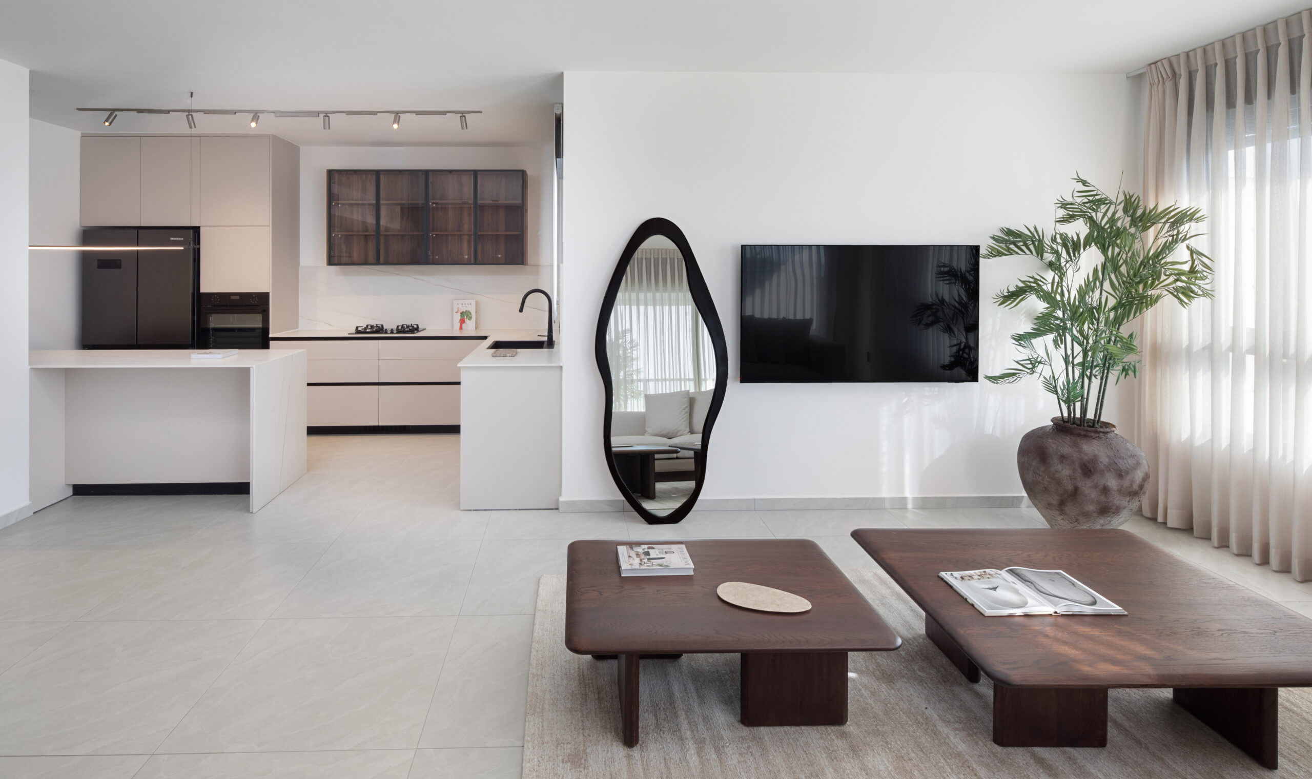 הדירה עוצבה מתוך מחשבה על חוויית מגורים מאוזנת, המשלבת בין ניקיון צורני לרוך חומרי. השפה העיצובית שקטה ומדויקת, עם קווים רכים, צבעים טבעיים וטקסטורות נעימות שיוצרות תחושת זרימה והרמוניה. האור הטבעי מדגיש את המרחב ומעניק לו עומק וחמימות, בעוד הבחירות העיצוביות שומרות על פשטות אלגנטית ונוחות יומיומית. זהו בית שמרגיש נכון, נינוח ומזמין – עיצוב שמלווה את החיים מבלי להעמיס, ונשאר רלוונטי לאורך זמן.