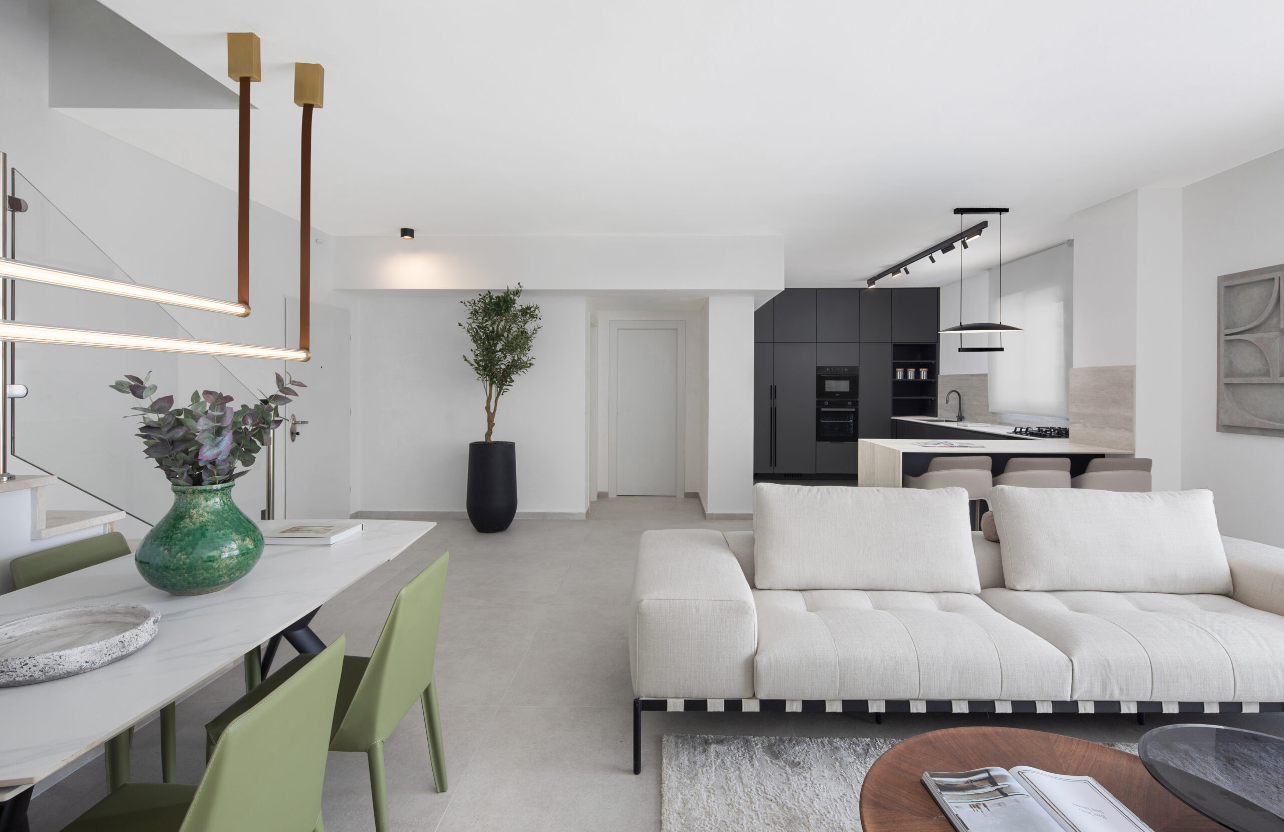 הדירה מציגה עיצוב אלגנטי ונקי, שבו האיזון בין פשטות ליוקרה יוצר חוויה על־זמנית. המרחבים מאורגנים בהרמוניה שקטה, וכל פרט משתלב ברצף טבעי שמעניק תחושת עומק ורוגע. זהו מרחב מגורים שמרגיש נכון בכל רגע – חיבור בין דיוק, איזון ונוכחות עדינה.