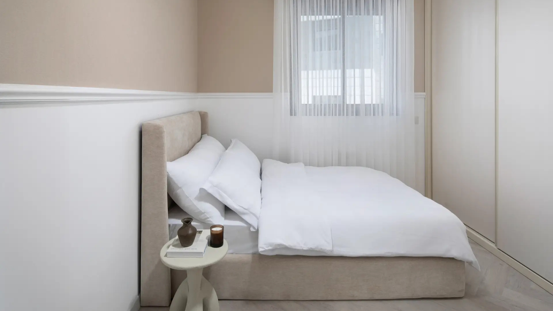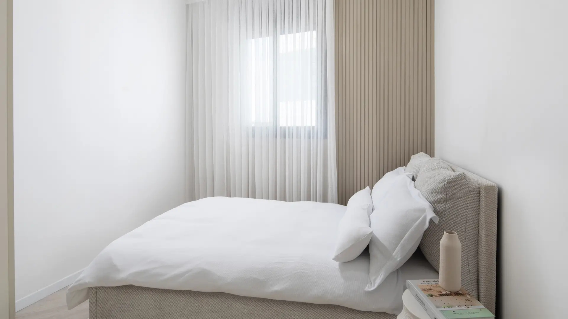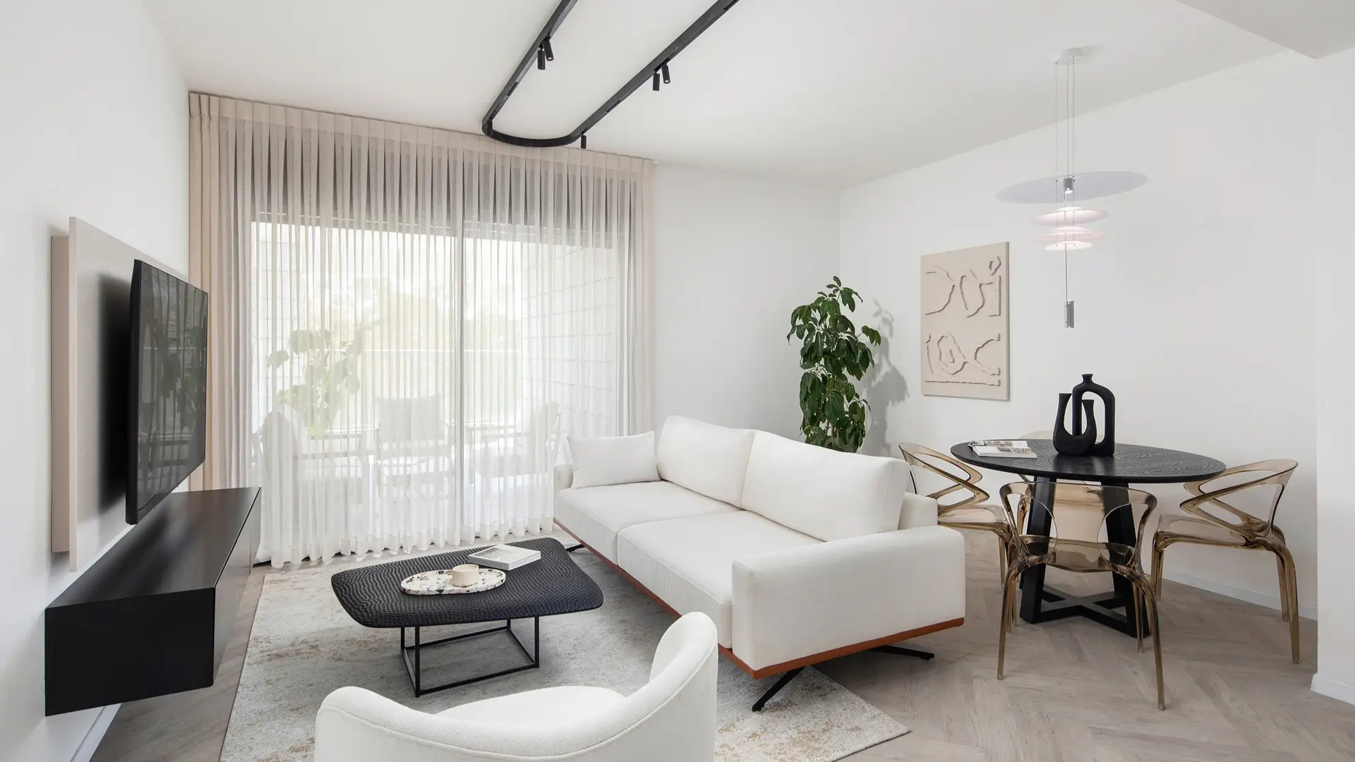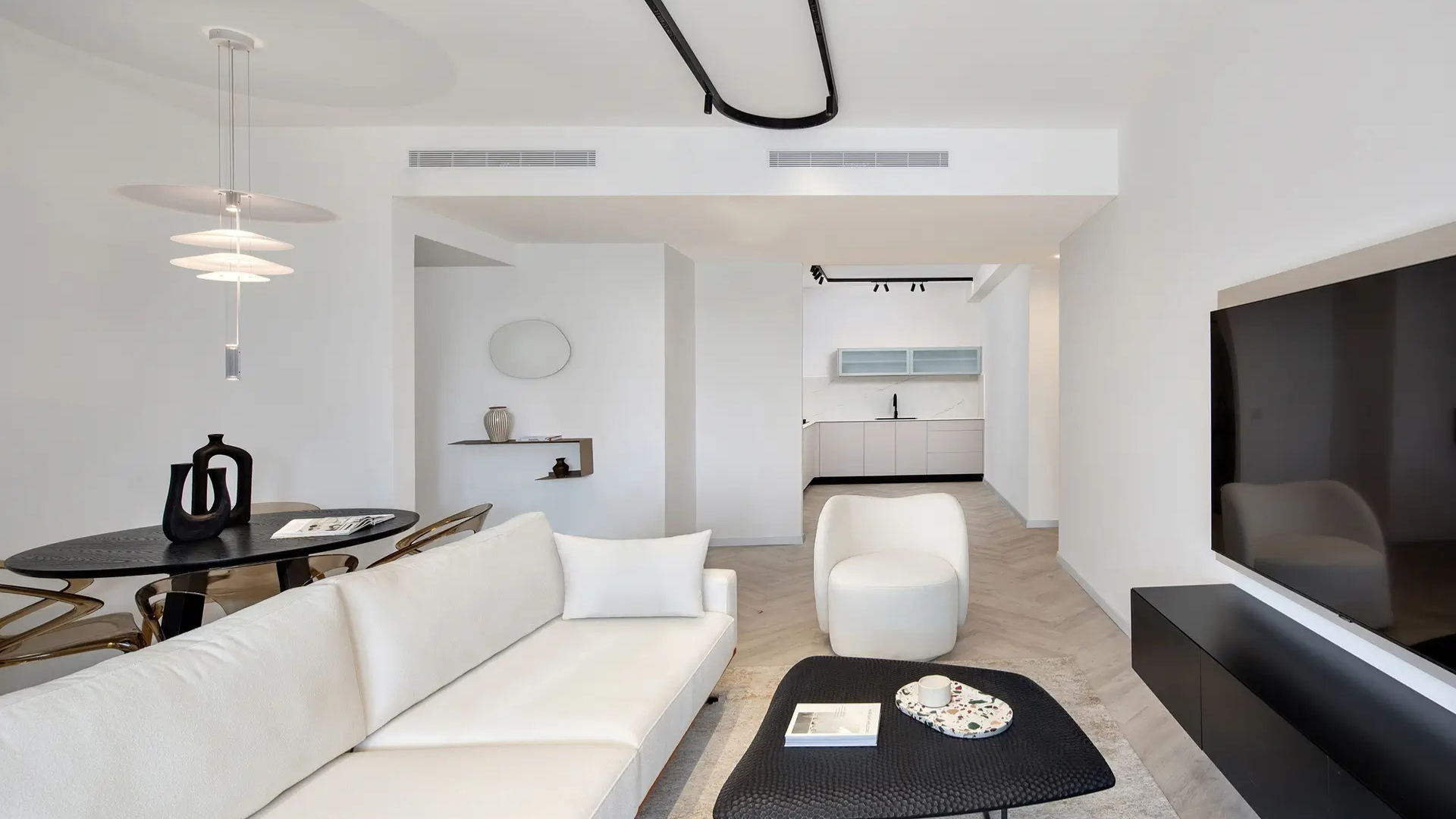 דירה מעוצבת בקפידה, עם חללים מתוכננים באופן פונקציונלי ומותאם אישית. שימוש בחומרים יוקרתיים וגימורים מדויקים מייצרים חלל מגורים מוקפד ומלא באור, המשדר אלגנטיות ואווירה נינוחה.